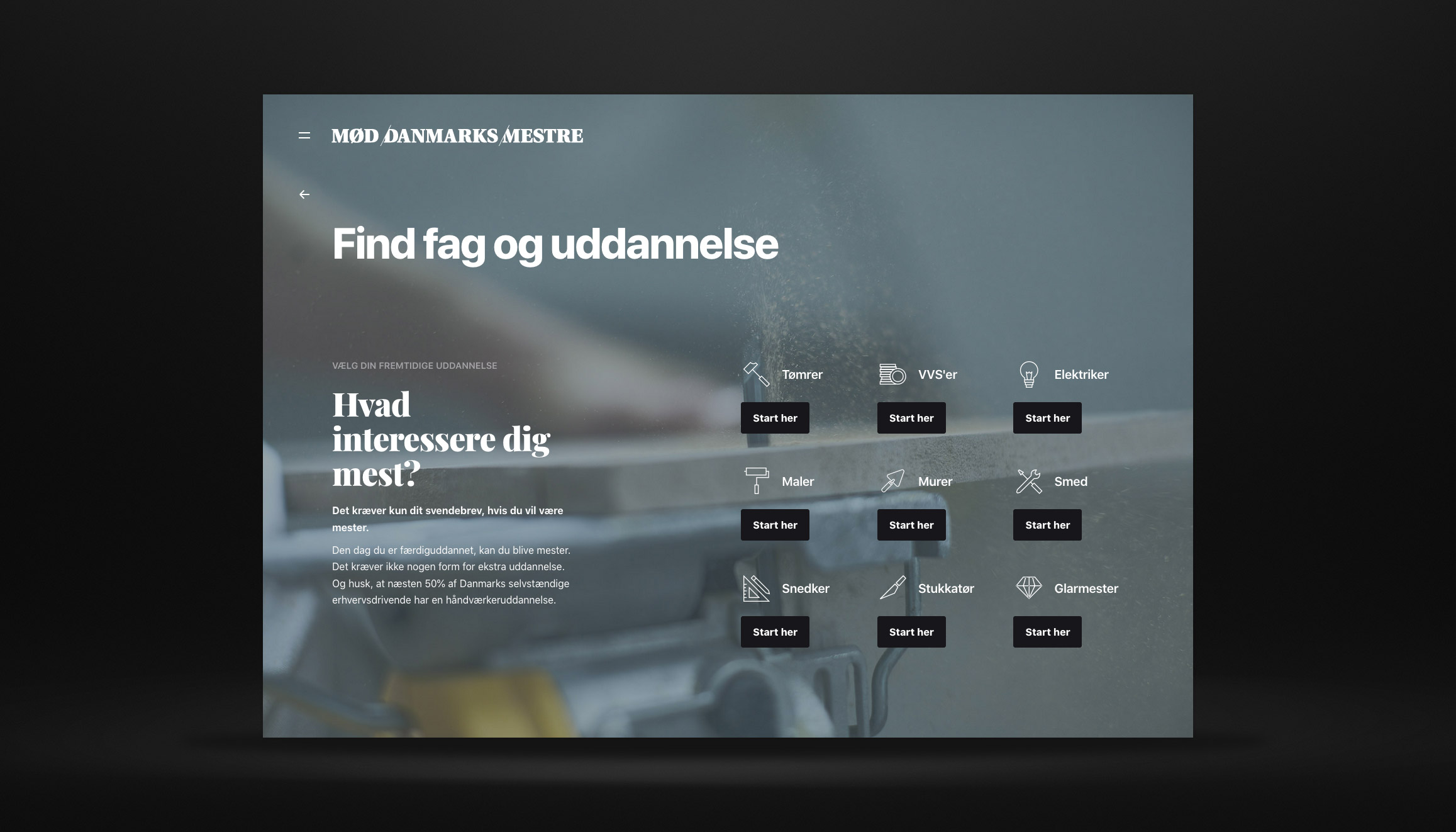 Mød Danmarks Mestre is a campaign site to promote the craftsman educations in Denmark.